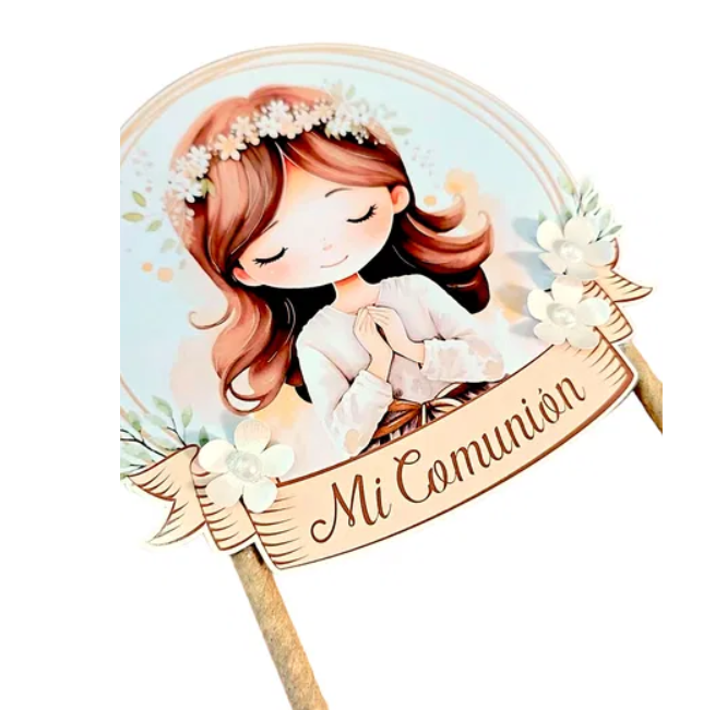 Topper XL Comunión Nena Flores