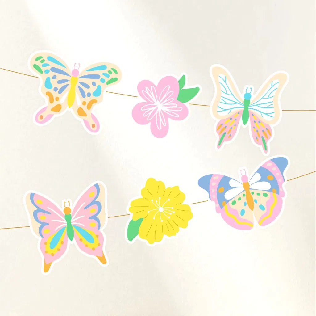 Guirnalda flores y mariposas
