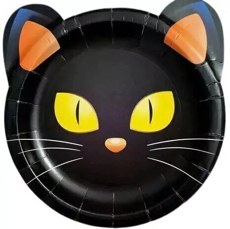 Plato gato halloween x8 unidades