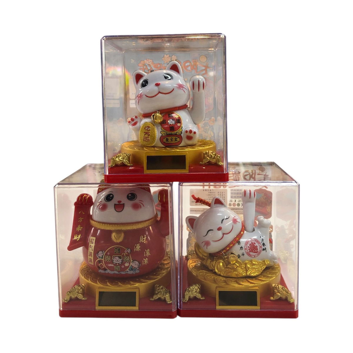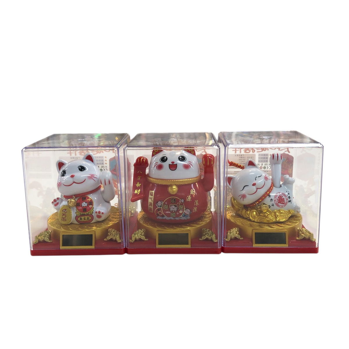 Gato de la fortuna SOLAR GRANDE en cubo transparente