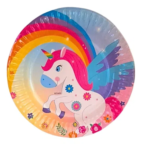 Plato unicornio con alas y flores x6 unidades