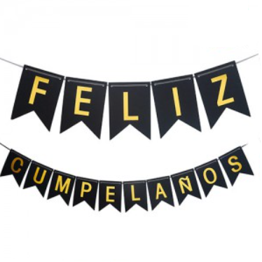 Banderín NEGRO "Feliz cumpleaños" glitter