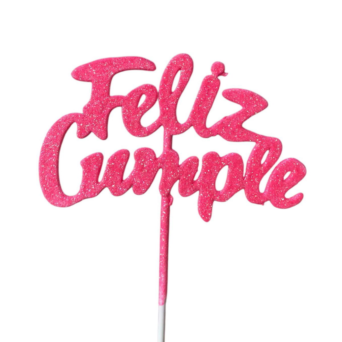 Topper feliz cumpleaños ROSA GIBRÉ de plástico