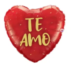 Globo "te amo" corazón confetti rojo y dorado 45cm aprox.