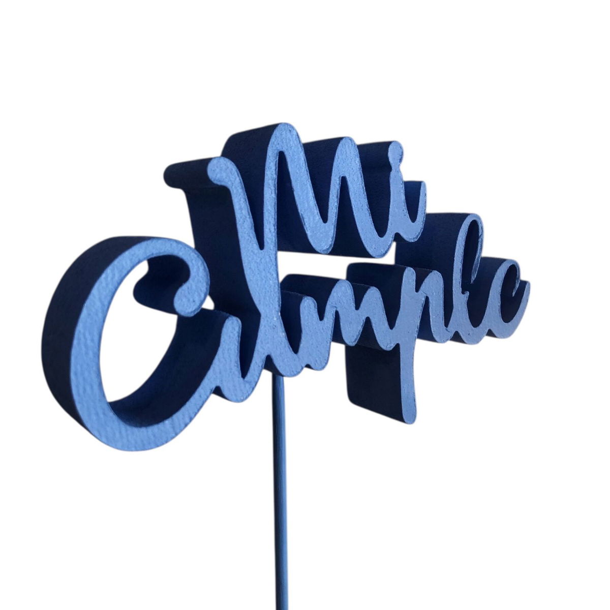 Cartelito cake topper de polifan "Mi cumple" AZULINO x1 unidad