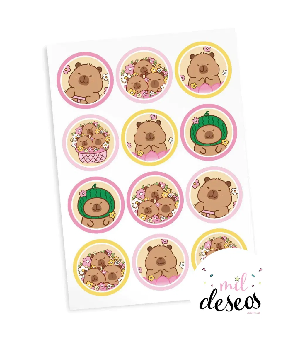 Sticker capibara kawai flores x12 unidades