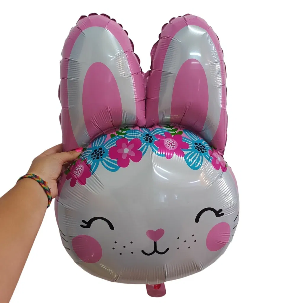 Globo cabeza de conejo de pascua con flores 68cm aprox.