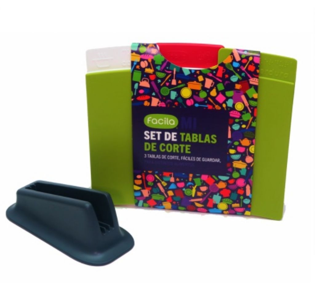 Tabla de corte x3 con base -verde, blanca y roja- 25x20cm