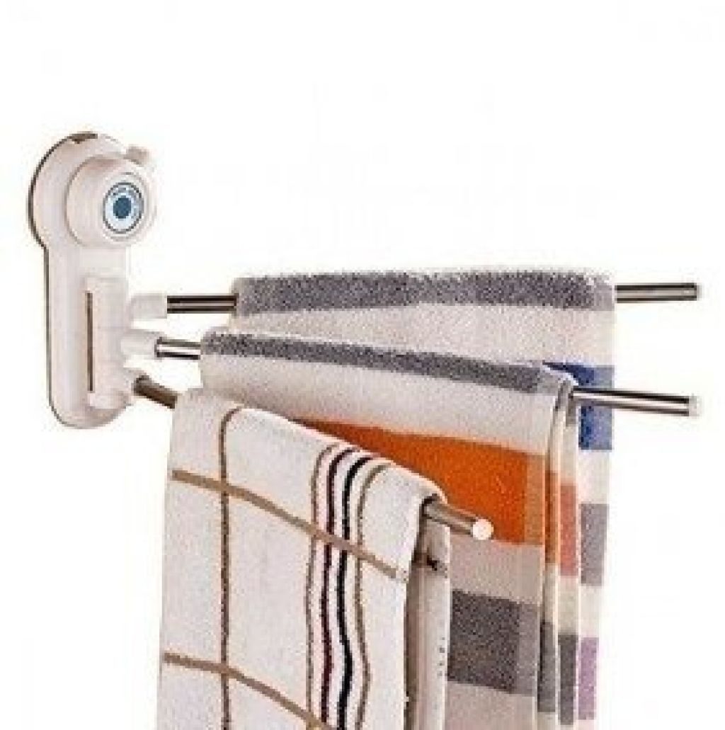 Soporte triple para toallas o repasadores giratorio cromado con ventosa