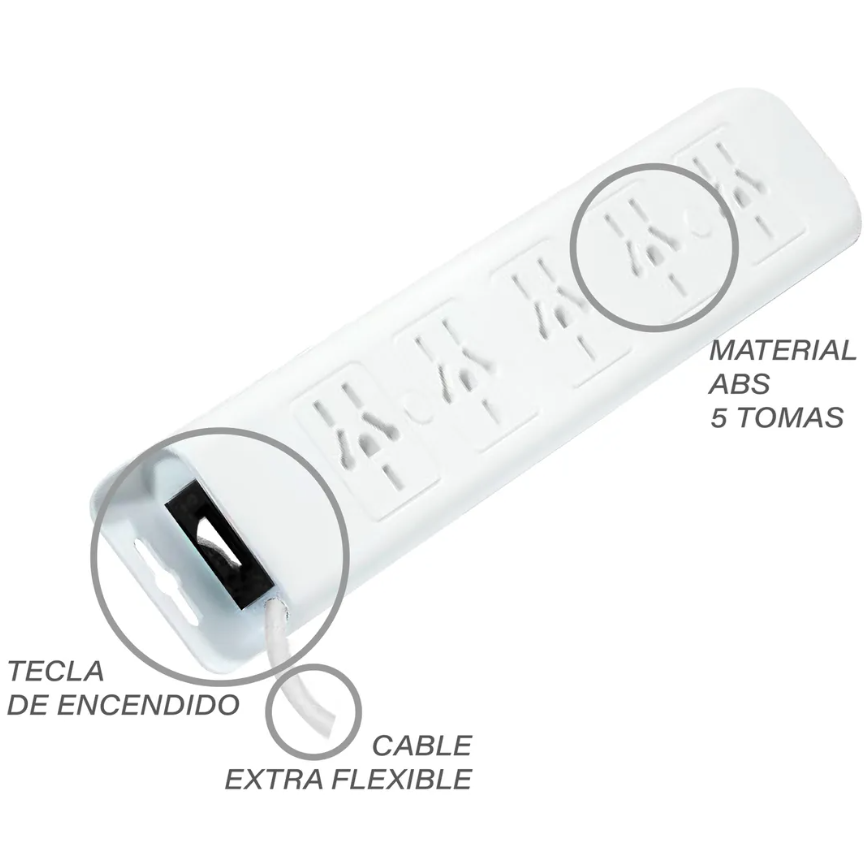 Zapatilla VR-PLAST con interruptor 5 tomas de 5mts de largo