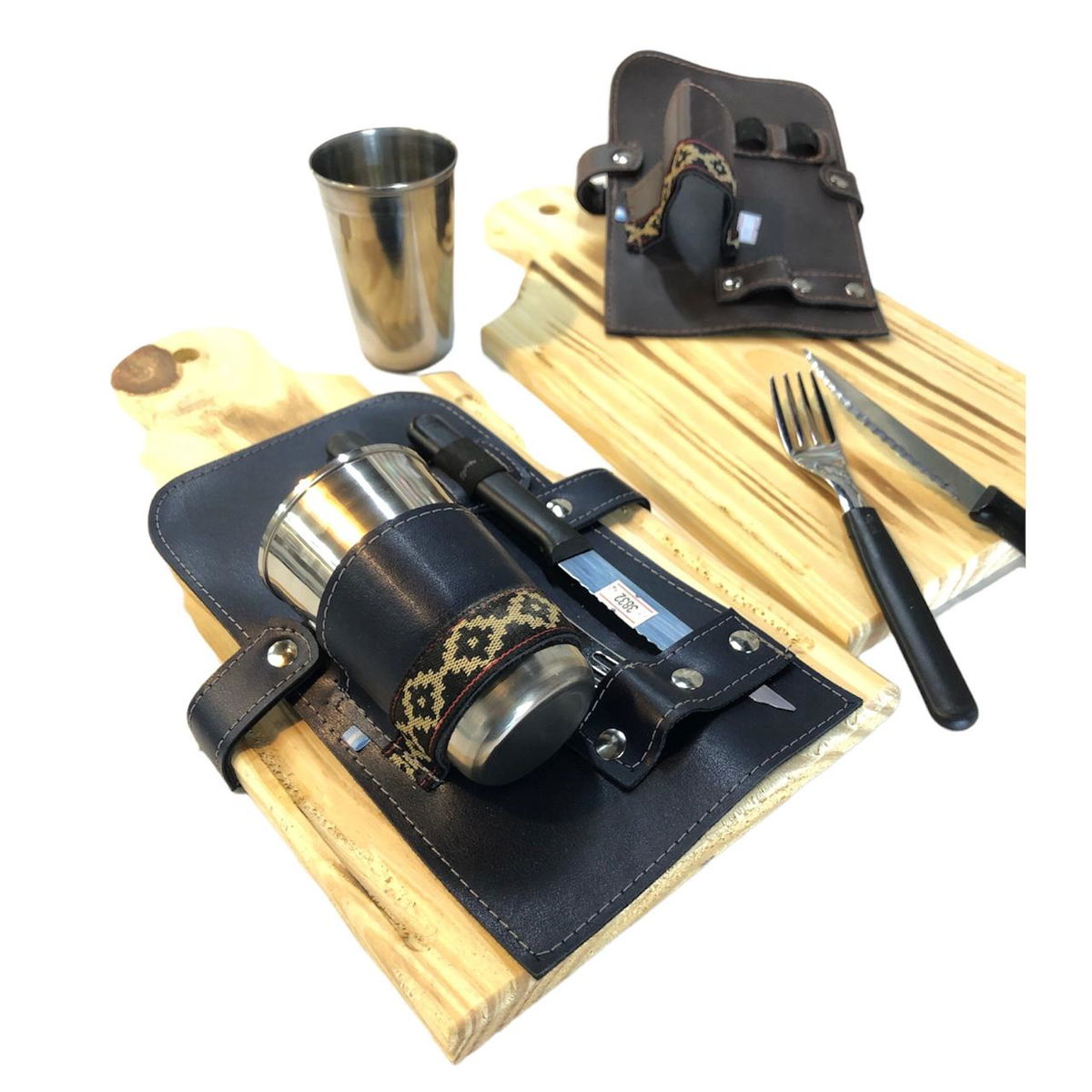 Set de asado x4 piezas con tabla de pino37cm x 19cm