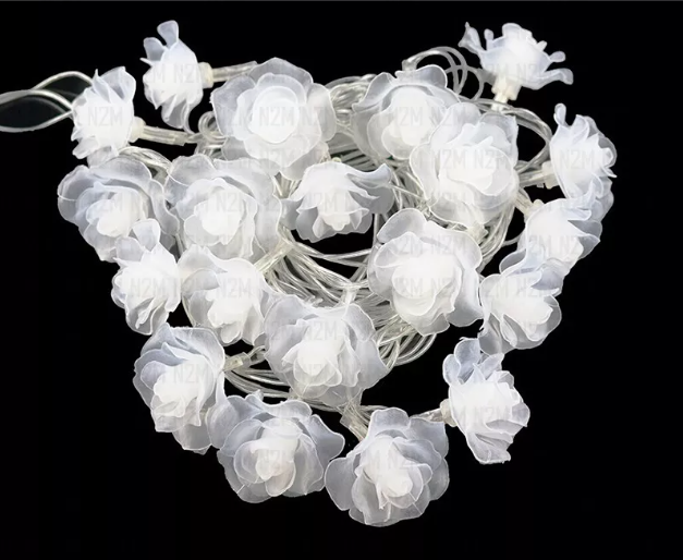 Guirnalda FLOR BLANCA DE GOMA EVA 10 LED a pilas blanco frío