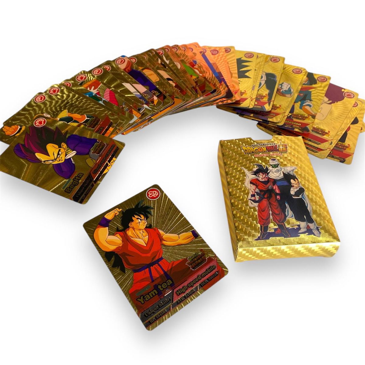 Cartas dragon ball en CAJITA DORADA METALIZADAS X 55 cartas