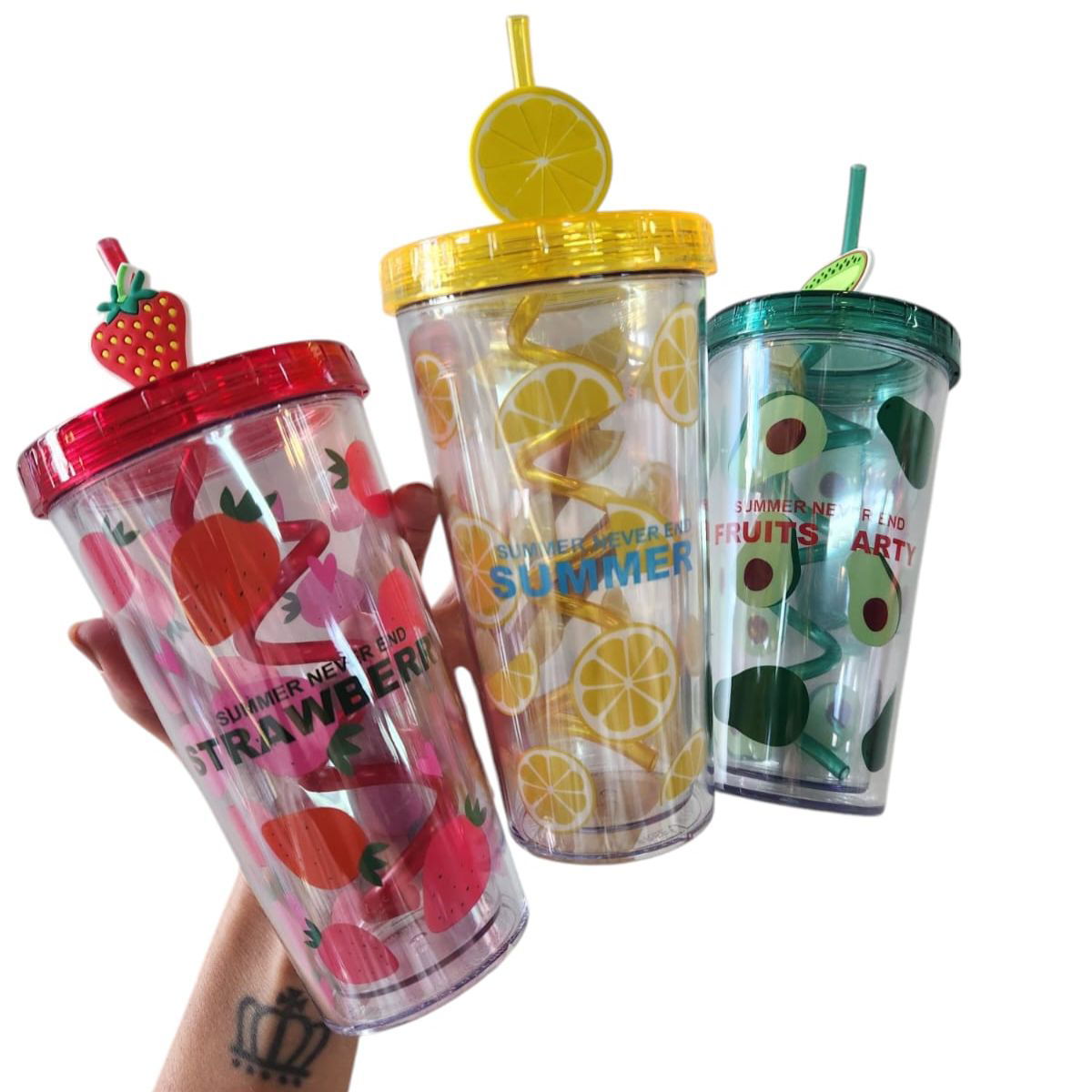 Vaso acrílico FRUTA doble pared con sorbete en caja blanca