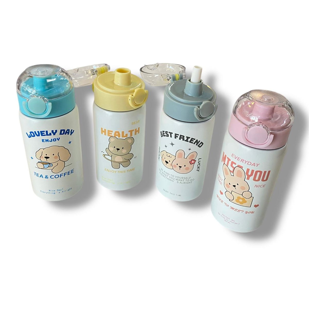 Botella térmica infantil ANIMALITOS 380ml de acero inoxidable sorbete silicona (NH24139)