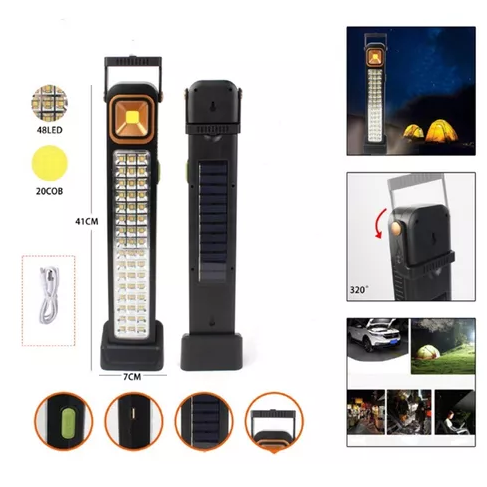 Luz de emergencia 48 LED recargable 45w 40cm con panel solar (HEL-6866T)