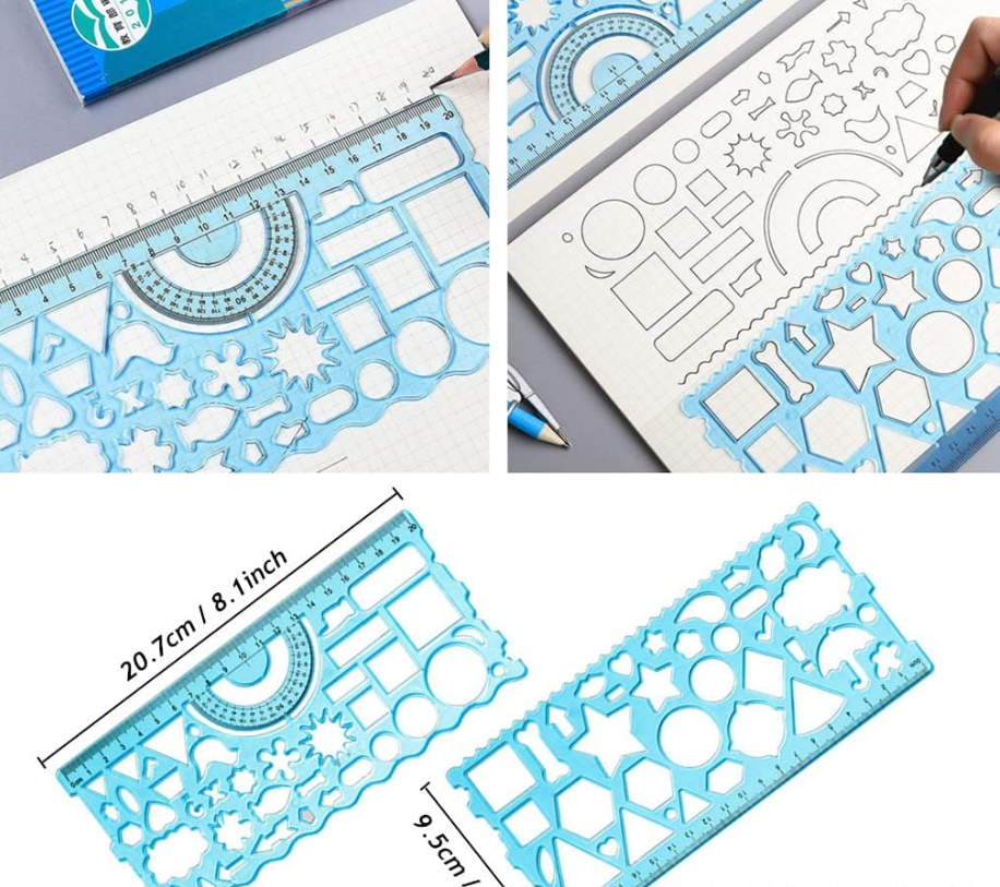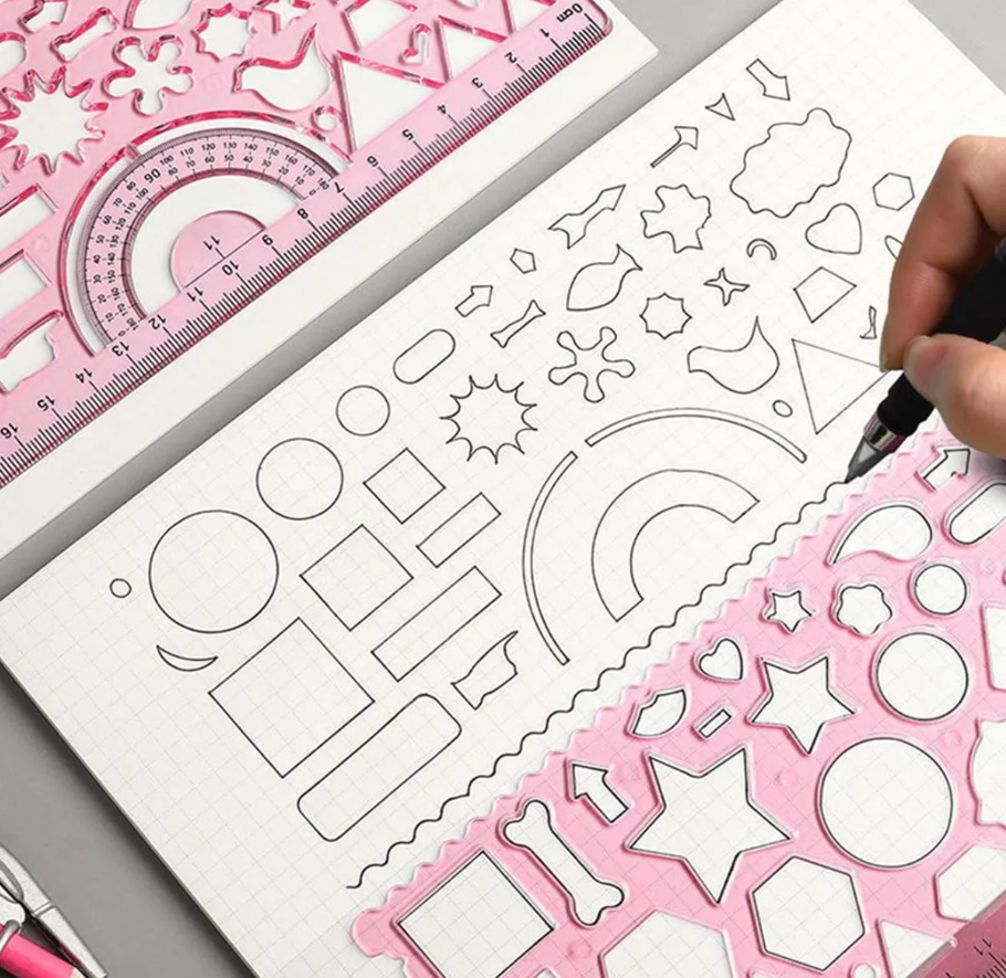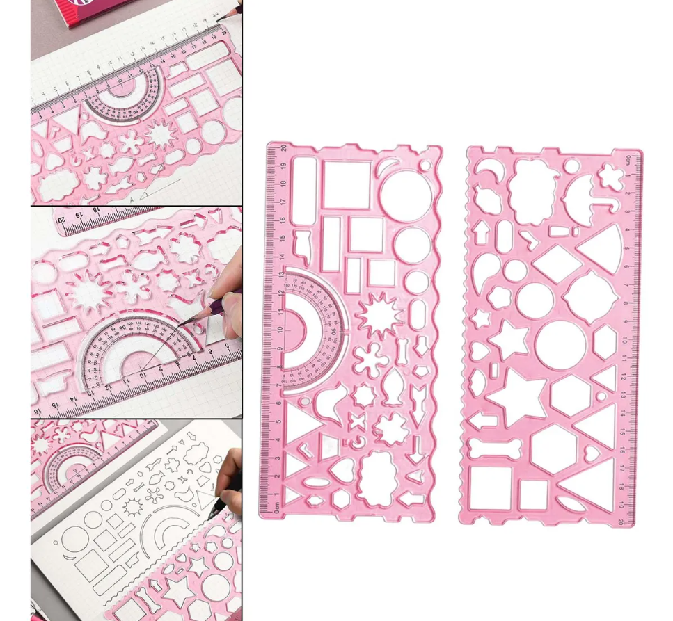 Set x2 regla geométrica con plantilla de dibujo multifuncional colores surtidos (HZ-7106)