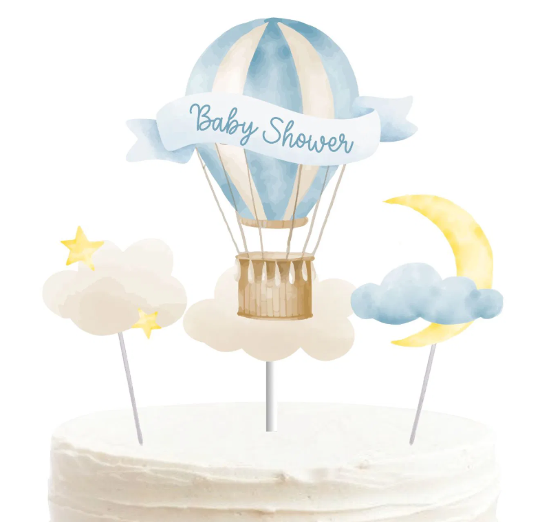 Topper silueta GLOBO AEROSTATICO BABY SHOWER CELESTE