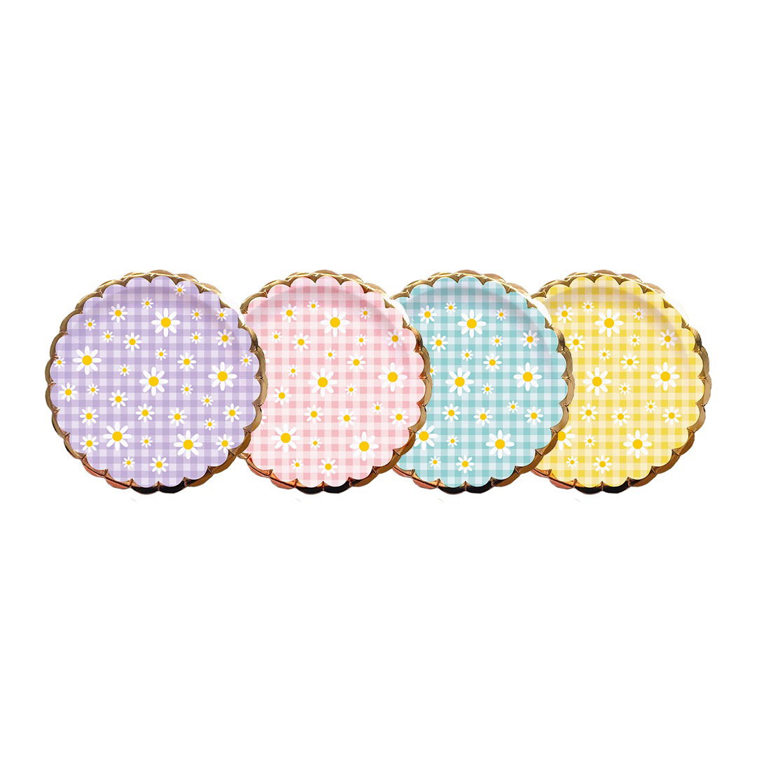 Plato margarita surtido pastel contorno dorado x8 unidades