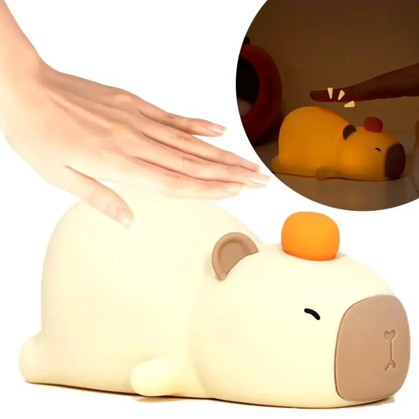 Lámpara recargable de silicona CAPIBARA ACOSTADO CON NARANJA