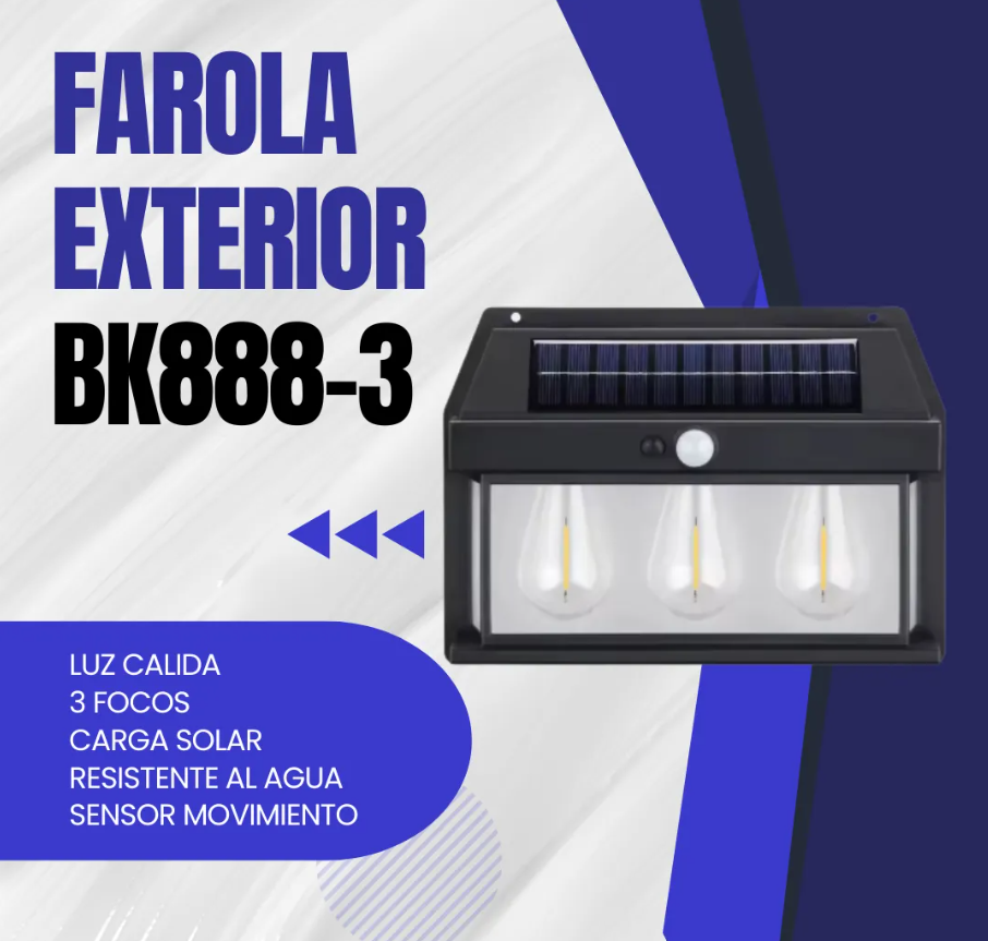 Farol CON 3 lámparas LED solar con sensor de movimiento 1600lum (BK-888-3)