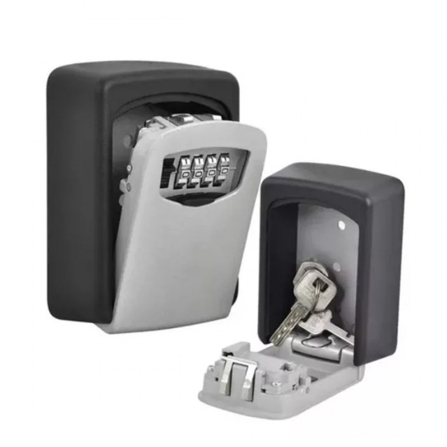 Mini caja fuerte de PLÁSTICO almacenamiento de llaves 15x15x5cm caja MARRÓN