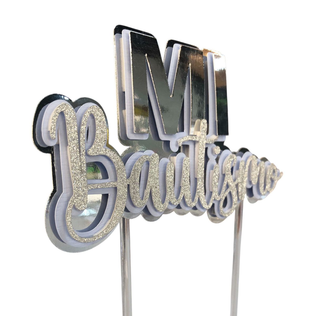 Topper Mi bautismo CELESTE PASTEL Y PLATEADO