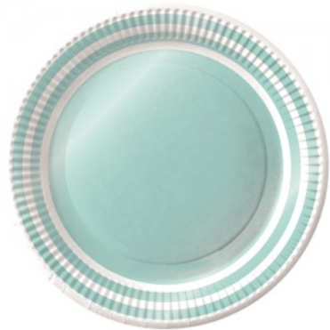 Plato bandeja CELESTE PERLADO CON BORDE BLANCO 23cm x6 unidades