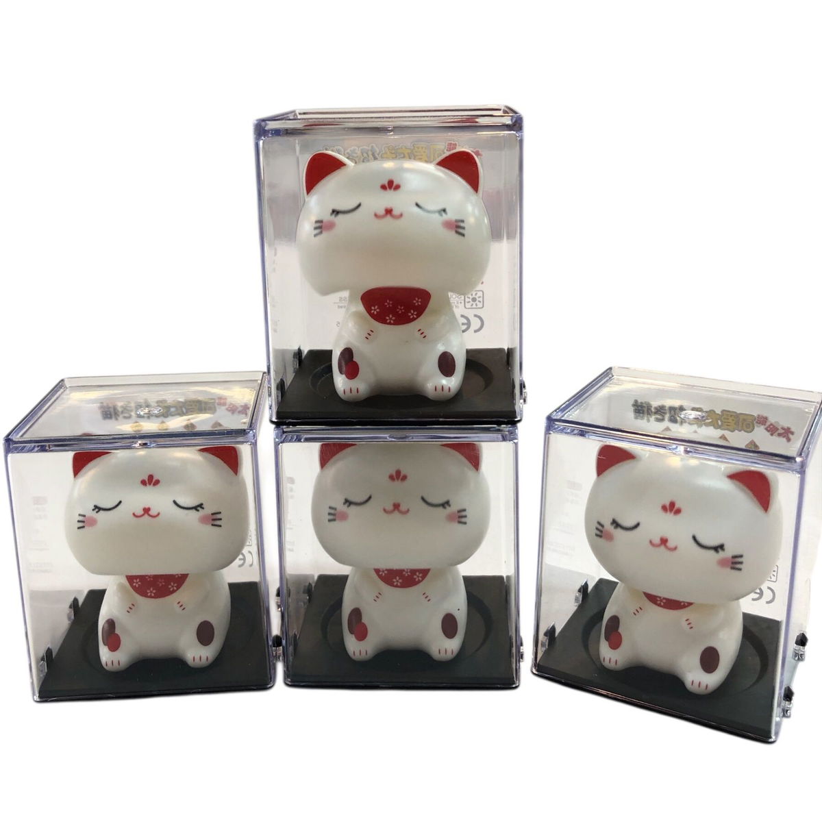 Gato de la fortuna solar mueve CABEZA blanco en cubo transparente