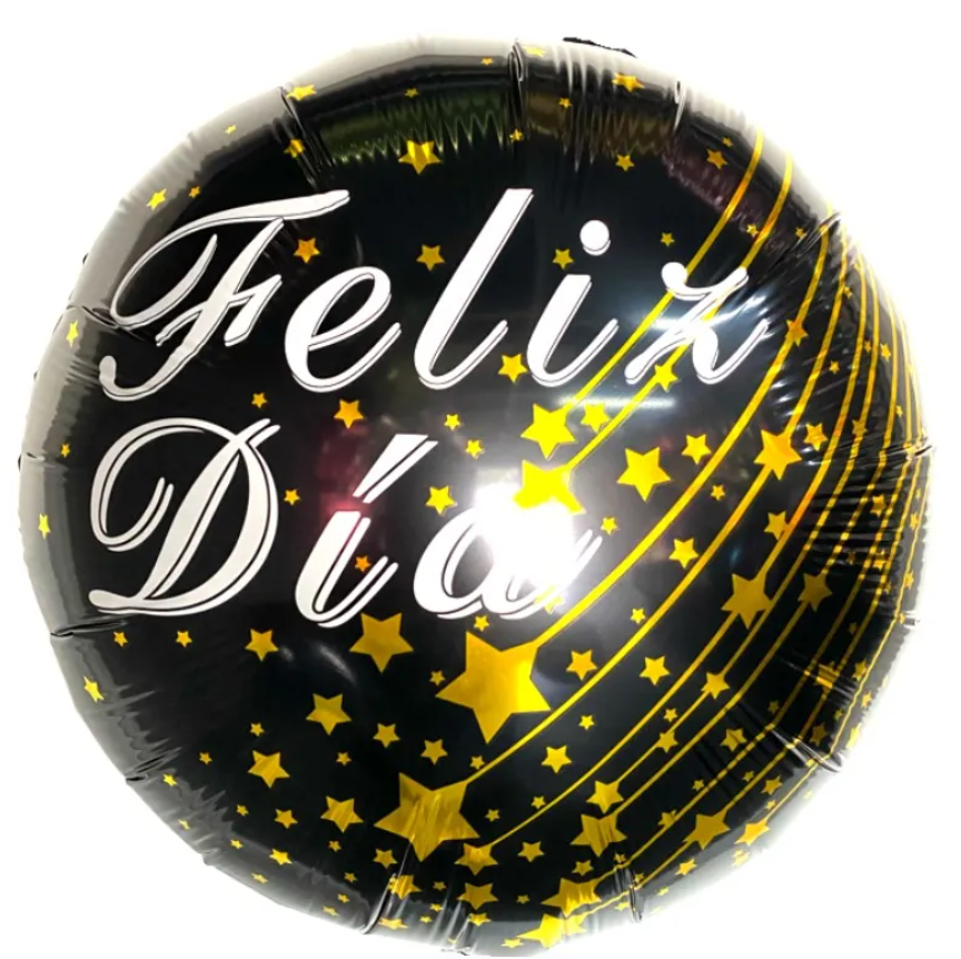 Globo redondo "Feliz día" NEGRO Y DORADO 45cm