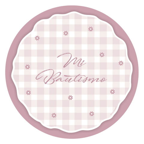 Plato de sitio Mi Bautismo cuadrillé ROSA x12 unidades