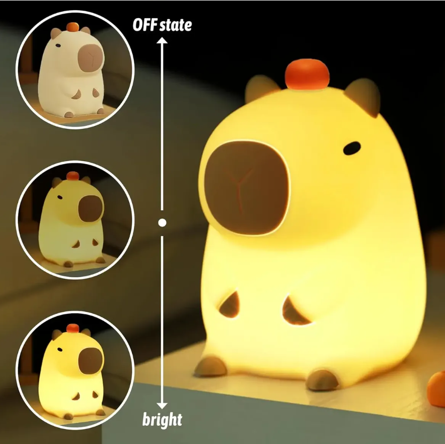 Lámpara recargable de silicona CAPIBARA SENTADO CON NARANJA