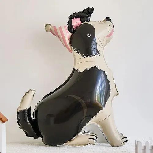 Globo perro Border Collie con bonete rosa 90 x 90 cm.