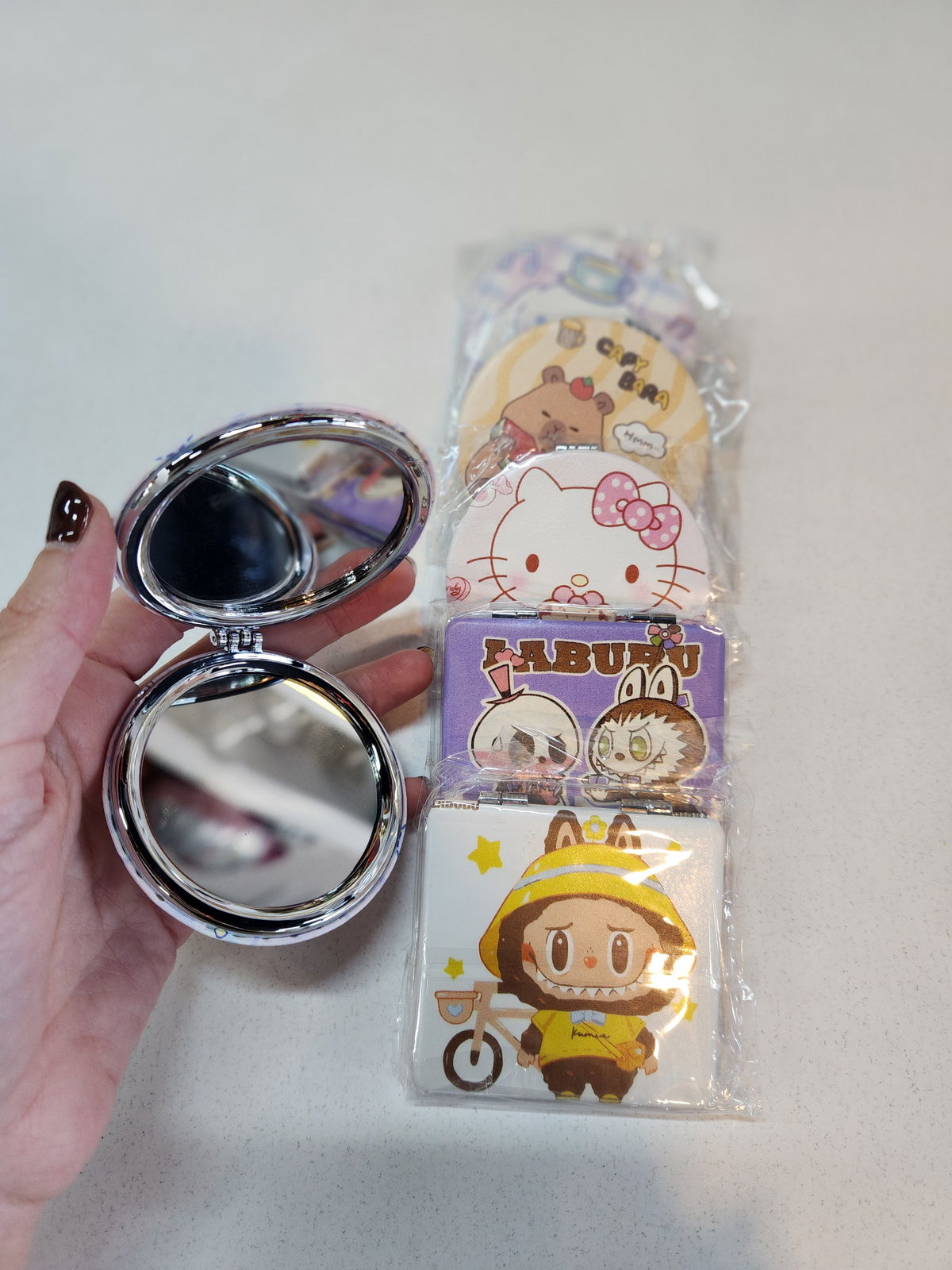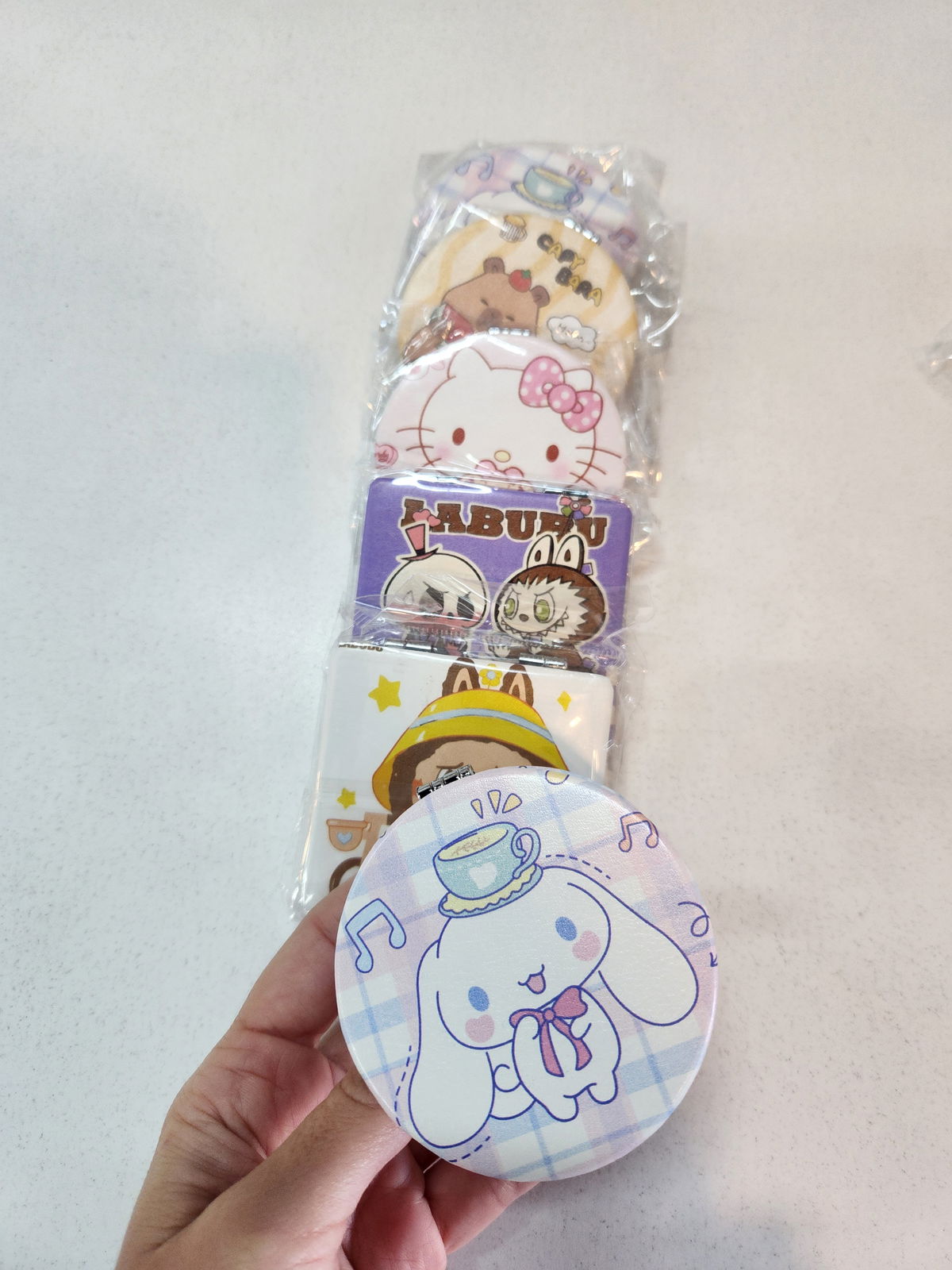 Mini espejo de cartera de metal personajes surtido x1 unidad