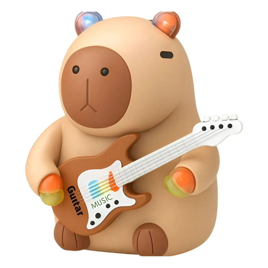 Muñeco CAPIBARA CON GUITARRA musical y movimiento a pilas en caja
