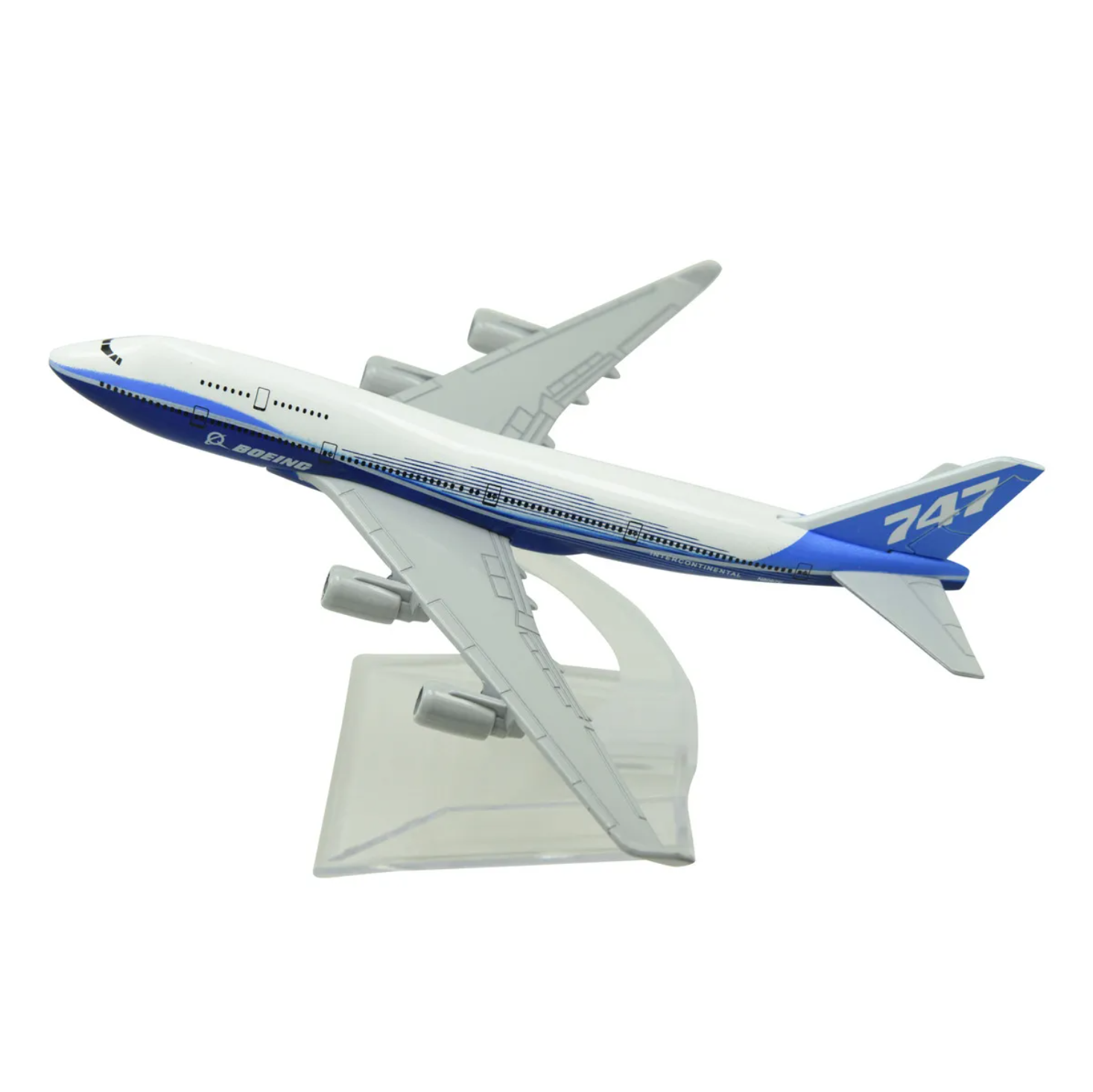 Avión coleccionable con soporte en caja celeste 10cm.