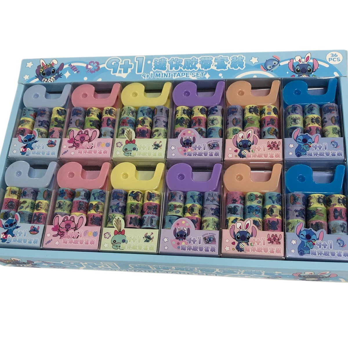 Mini rollo de cinta adhesiva decorativa STITCH x8 unidades con porta cinta
