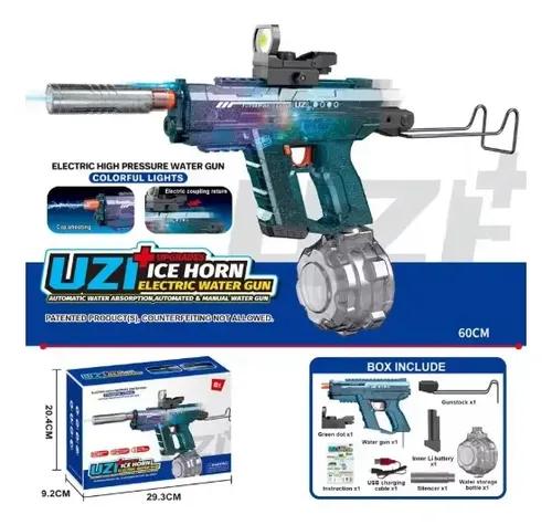 Pistola de agua recargable con luz y sonido UZI (707895B)