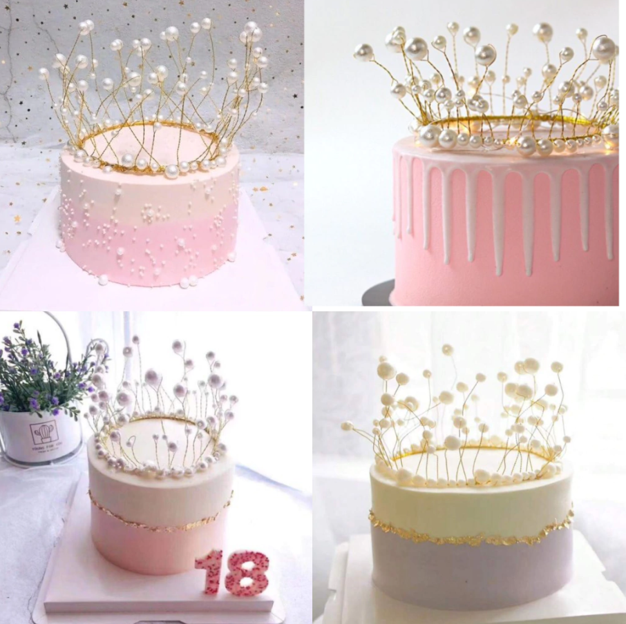 Topper corona con perlas para torta DORADO