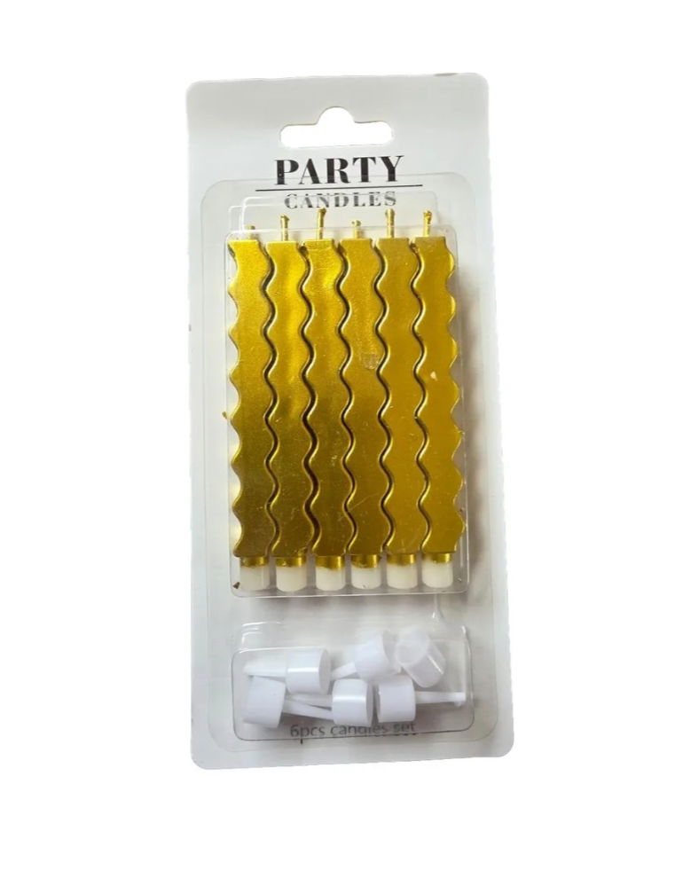 Vela metalizada con ondas gruesas dorada x6 unidades